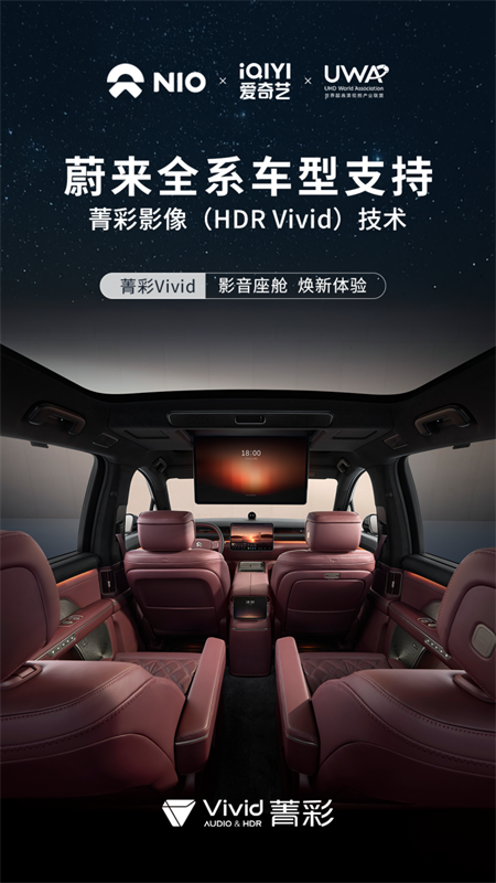 近日,世界超高清视频产业联盟(UWA联盟)、蔚来、爱奇艺三方联合,实现蔚来全系车型支持菁彩影像(HDR Vivid)技术。蔚来成为行业首个在安卓车载平台全系标配该技术、并率先应用 HDR Vivid 内容生态的车企。
