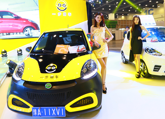 据了解这些黄色的电动汽车全部出自位于新能源展区T3展位的河南一步用车科技有限公司(以下简称一步用车)。