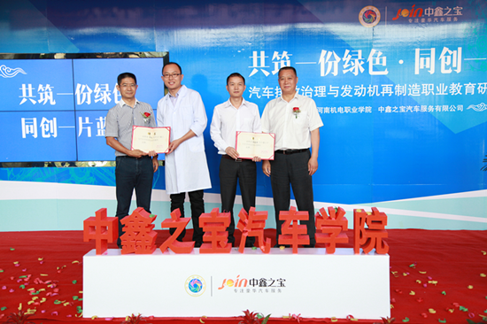 为了培养汽车维修专业技术人才,为汽车后市场输送坚实的人才力量,并在汽车排放与治理领域为环境保护作出贡献,河南机电职业学院、中鑫之宝汽车服务有限公司于2017年6月16日在中国郑州共同为“中鑫之宝汽车学院”揭牌。