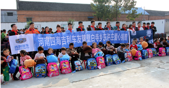 河南帝豪GS俱乐总部的车友在为孩子们发放礼品