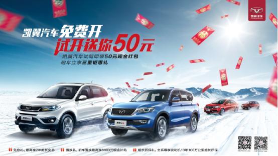 时至年底,有些人已经赶着各类促销活动提前囤积年货了,这里面肯定有不少人谋划着购车大计,无论是初次购买,还是更换新车,一辆兼具智能、实用与品质的座驾肯定是最正确的选择。凯翼汽车最新推出的“试驾有礼”活动就是一个极佳契机,自2018年1月1日至2月28日期间,不仅全系车型性价比超高,而且只要进店试驾凯翼X3、X5车型,便能领取现金红包50元,购车还享受其他多重豪礼(详情咨询当地经销商)。
