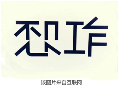 我相信大多数人最熟悉的还是方块字。因为从小到大,我们耳濡目染最多的就是“横平竖直”的书写体。然而现在,汉字也可以通过巧妙的构思,或有趣的变换,产生异曲同工的精妙解读。比如下面这两个字: