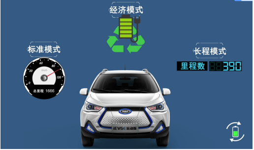 iEV6E运动版共有三种驾驶模式可选,标准模式,实测最高车速可达110km/h,起步加速快;经济模式,大幅提升续航能力,综合工况条件续航达310km;长程模式,加速平缓,最大续航里程达390km。