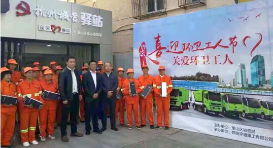 同时,在四川成都新署环卫工程有限公司、吉林长春市经济开发区、浙江杭州萧山区、山西太原等地,宇通环卫走访一线环卫工人,结合各地环卫工人工作生活需要,特别准备了实用的爱心物品,在节日里给他们带去温暖。
