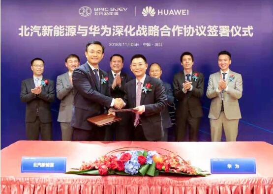 [中国,深圳,2018年11月5日] 北京新能源汽车股份有限公司(以下简称北汽新能源)与华为技术有限公司(以下简称华为)签署了深化战略合作框架协议。