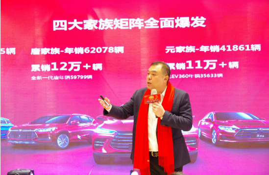 比亚迪汽车销售有限公司总经理助理路天先生亲临现场并做了精彩的致辞。路总对过去一年广大媒体及客户朋友们对比亚迪的大力支持表示了真挚的感谢,同时展望了2019年比亚迪发展的美好蓝图,希望依托国际化、电动化和智能网联三大核心竞争力,以秦、唐、宋、元等王朝车型为承载,让比亚迪黑科技不断进化,以中国智造力量持续向上,引领未来。