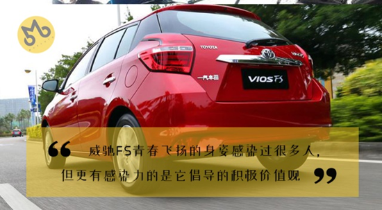 “不说才会后悔吧”——设计师艾琪艾琪,一个刚毕业的“菜鸟设计师”、“乳臭未干的小丫头”,竟然“不知天高”地和部门总监争执起来。“这个设计方案真的有问题,目标客户是90后,那种属于70后的怀旧风是不会有共鸣的。”她回想起刚才,就是这几句话彻底惹毛了总监,成了他口中的不知天高地厚。艾琪心里有些难受,得罪了总监,以后的日子恐怕不会好过,她告诉大家“不说才会后悔吧,提案那么重要,看到问题不说出来,才是不负责任。”而总经理淡淡地说:“艾琪的建议很有道理,你的方案也会作为PlanB一起提交给客户,你准备一下,一起去提案”...路上,艾琪又路过了永青路的那家4S店,隔着玻璃看着那辆和她心灵相通的那辆车。她工作已经1002天了,每天下班都会路过这家4S店,有一天她被一抹红吸引到,扭头就看到了它。学设计出身的她除了觉得那个飞扬的身姿比例很美,还觉得那个身姿里有一个灵魂,是另一个不肯将就的自己。后来她知道那辆红色的车叫威驰FS,她为那抹红着迷,给它取名叫RED,并暗暗决定要攒钱买下它,此后只要有时间,她都会在4S店外隔着玻璃看一会儿,像是在凝望自己的梦想。但现在,她又站在RED对面,希望又重新复活,“好好努力”,她暗暗给自己加油,又向那抹红挥了挥拳头。结果在意料之外,又在情理之中。“菜鸟”设计师艾琪的方案因为贴近90后偏好而被客户选中,奖金发放的那一天,艾琪的心一直兴奋地在嗓子眼猛跳,她知道,和RED生活在一起的日子真的到来了。如果哪天你在路上看到一个女孩开着一辆红色1.5LCVT锋潮版威驰FS,她的脸瘦削坚定、扎着干净利落的马尾巴,有一双不妥协的眼睛,她可能就是艾琪。