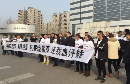 对宝沃伤透心的经销商,再一次站在厂家面前维权。近日宝沃汽车经销商代表聚集北汽福田总部,维权横幅中表明他们来此的目的:“福田宝沃,欺骗经营,坑害经销商,还我血汗钱”。