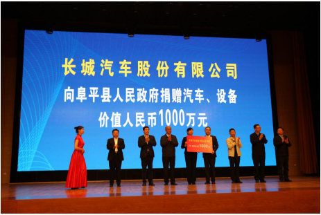 长城汽车向阜平县捐赠价值人民币1000万元的汽车及设备