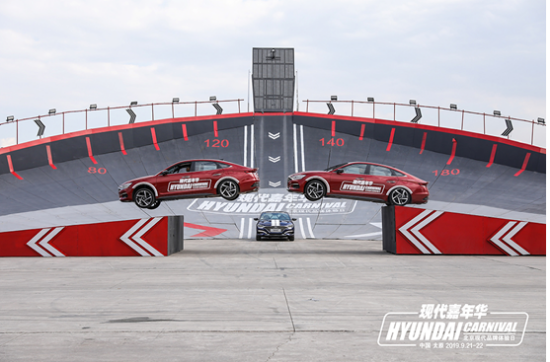 更刺激的还在后面,北京现代高性能车系的引擎轰鸣起来,在车手高超技艺的操控下,车辆瞬间移动至高运转速度,随即一个180°转向,瞬时超过地球自重引力的G值直接将你的肾上腺素甩出,刺激的乘坐体验,让你的脑垂体不断分泌多巴胺,对于北京现代产品的驾驶体验欲望,由内而外的迸发出来。