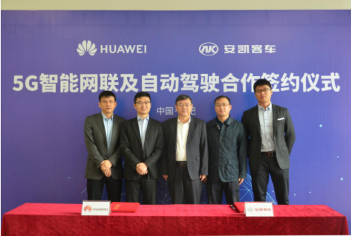 2019年10月17日,安凯客车与华为技术有限公司签署合作协议,双方将在5G智能网联及自动驾驶等领域展开全面、深入的合作。通过双方技术、资源优势互补,致力于推动智能网联、智能互联、车载计算及自动驾驶、云服务、智慧园区及5G+车联网等领域的合作创新,多方面构建客车智能解决方案,以全新合作业态推动智能交通领域的快速发展。