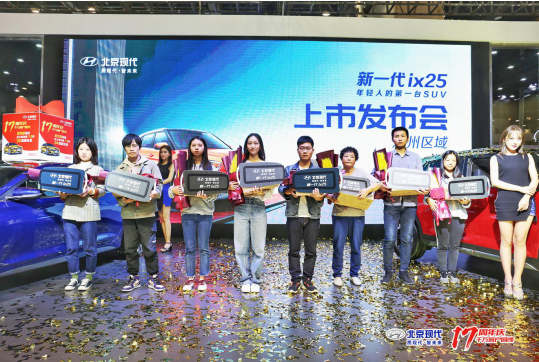 与此同时上市会现场 还幸运的邀请到了首批订购新一代ix25的八位客户,现场进行了隆重的交车仪式,为首批车主颁发新车钥匙,开启北京现代幸福之旅!