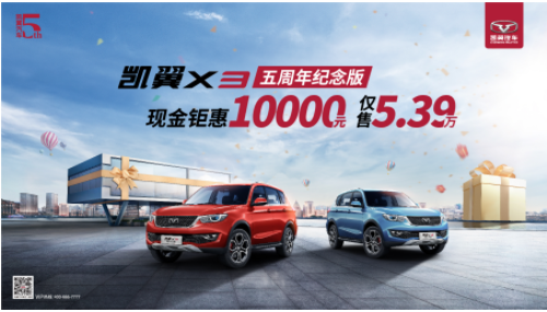 自凯翼X3五周年纪念版车型推出以来,市场反馈好评不断。其“现金钜惠10000元 仅售5.39万”的福利政策,在各地方车展及终端门店都吸引了大量消费者的关注,斩获不少订单,而优秀的销售业绩背后自然也离不开其优秀的产品力。