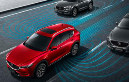 当车辆行驶速度大于15KM/H时,Mazda CX-5 2020款搭载的BSM盲点监测系统即自动启动,通过安装在汽车后保检杠内的雷达传感器,实时向左右两侧和车后方发出探测微波信号,通过对反射回的微波信号进行分析处理,即可得知左右两侧及后方车辆的距离、速度和运动方向。