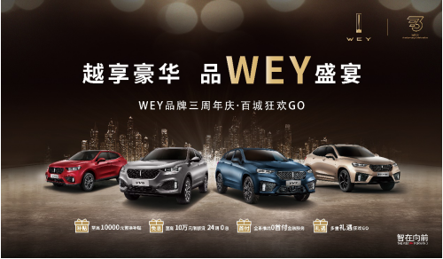 日前,中国豪华SUV品牌WEY在三周年庆典之际同时开展的“越享豪华 品WEY盛宴 WEY品牌三周年庆·百城狂欢GO”系列钜惠促销活动,在万余名消费者的踊跃参与下圆满收官。WEY在本次活动中为消费者奉上全系车型购车大礼,特推出包括首付低至0元、最高10万元限额贷金融礼、专享10000元置换补贴、购物车清空特权等多重力度空前的豪华大礼及金融钜惠,进一步践行“让豪华触手可及”的品牌使命,助力用户轻松“拔草”梦想座驾,在凛冽寒冬中燃起一场专属于WEY的火热风暴。