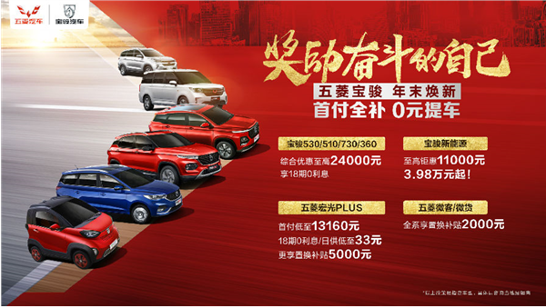 12月21日,五菱宝骏年末焕新大型团购会,宝骏510裸车价49800元起,最高现金优惠12000元;宝骏530裸车价69800元起,尊享36期0利息首;宏光PLUS最高优惠10000元;宝骏730、宝骏360、五菱神车全系全部享受年末钜惠,更多详情欢迎咨询济南当地经销商。