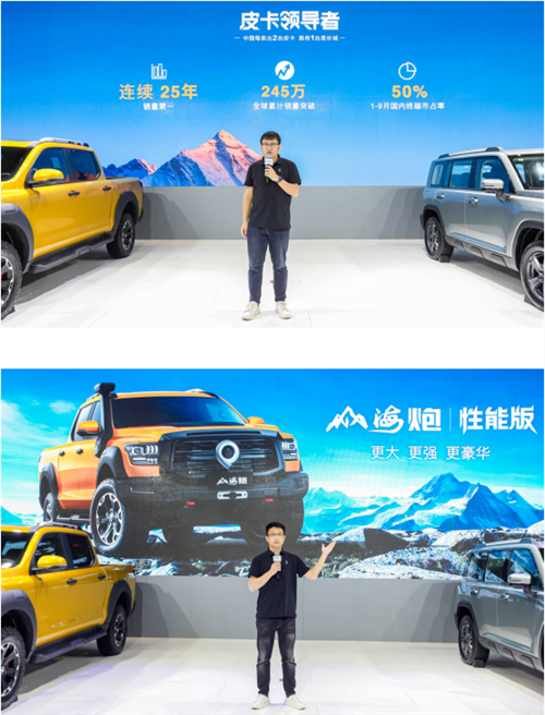 中国只有两种皮卡,一种是长城,一种是其他。长城皮卡已连续25年销量第一,全球累计销量突破245万。今年1-9月长城皮卡国内/出口销量双第一、乘商双赛道增速第一,国内终端市占率近50%,中国每卖出两台皮卡,就有一台是长城。长城炮已累计37个月销量过万,蝉联皮卡销量冠军。今年8月18日长城炮品牌四周年,迎来第50万台整车下线,成为首个突破50万台的中国高端皮卡品牌,以现象级的“长城炮速度”,开启中国智能豪华皮卡新篇章。同时,在皮卡市场竞争激烈的河南区域,长城炮也取得了销量突破20000台的骄人业绩。