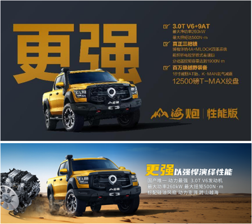 站在50万台荣耀之上,长城炮将继续坚持品类创新、用户共创,以技术创新打造高价值皮卡产品,在全球市场决战国际主流品牌,剑指全球前三,让中国皮卡在全球流行起来。