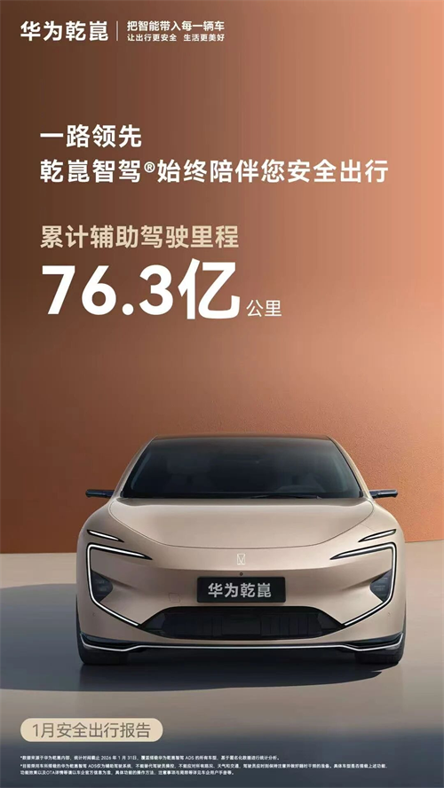 华为乾崑的目标一直是安全优先,在推动汽车行业智能化升级的同时,得到了百万车主的信任与选择。最新数据显示,截至2026年1月底,华为乾崑智驾 ADS累计辅助驾驶里程超76.3亿公里;1月份,月度主动避免可能的碰撞32.5万次,月度人均辅助驾驶里程497公里,辅助驾驶月活用户占比94.3%。华为乾崑智驾 ADS还搭载了全维防碰撞系统CAS 4.0,以五维安全为目标,让每一次出发,都安全抵达。可以说,安全优先,正是广大车主选择华为乾崑智驾的关键原因。