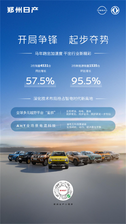 此次2月份销量的大幅增长,既是市场与消费者对郑州日产产品品质、贴心服务的高度认可,更是企业稳步迈向“高端新能源皮卡第一品牌”的坚实一步。展望未来,郑州日产将继续以核心技术为矛、以全体系实力为盾,深耕皮卡赛道、突破行业边界,为中国皮卡行业高质量发展注入源源不断的强劲动能。