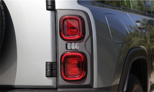 车身尺寸上,哈弗猛龙长4800mm(外挂备胎),宽1916mm,高1822mm,轴距2738mm。车尾的设计同样出色,方正的造型搭配两侧竖排尾灯组,辨识度非常高。车身侧面设计方正,轮眉和车门下部安装了防擦护板,车顶配备了行李架。黑色的五辐式轮圈显得很有力量,高扁平比的轮胎具有出色的越野性能。