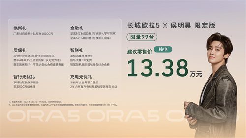 【中国·保定】4月13日,由长城欧拉携手品牌代言人侯明昊及其粉丝团队打造的共创产品——长城欧拉5限定版纯电版(以下简称“欧拉5限定版”)正式上市,建议零售价13.38万元,欧拉5限定版售价与长城欧拉5 580km激光雷达版一致,新增敦煌绿车漆、专属尾标、中央扶手箱刺绣等多项专属配置,并可享“换新礼”、“金融礼”等多重限时好礼,加量不加价。活动当日,侯明昊现身保定爱情广场,把精心挑选的专属礼物交到首批用户手中,并亲密互动。现场气氛高涨且热烈,不少粉丝朋友甚至不远千里从外地赶到发布会现场为侯明昊打call,并一睹新车的风采。