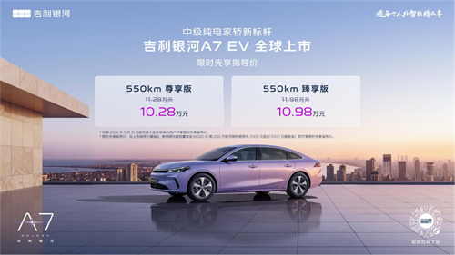 同步上市的吉利银河A7 EV上市限时先享指导价10.28万元起。