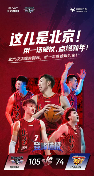球场如此,前路亦然。北汽极狐在征途上敢闯敢为、引领行业,北京男篮在篮下无畏冲击、勇拓新局,双方共用同一种心跳:战,就战赢未来!