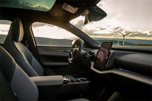 座舱内部秉持“不破坏、不打扰”的环保理念,成为沃尔沃EX30的核心亮点之一。内饰大量采用可持续材料,铝材中约25%、钢材中约17%为回收材质,装饰面板含30%可回收塑料与可再生材料,Nordico植然皮(松树脂制成)、丹宁饰板(回收牛仔纤维)及亚麻纤维面料的应用,不仅对皮肤和呼吸友好,更实现制造全过程无六价铬污染,槐蓝、松绿两种主题配色更添北欧氛围感。
